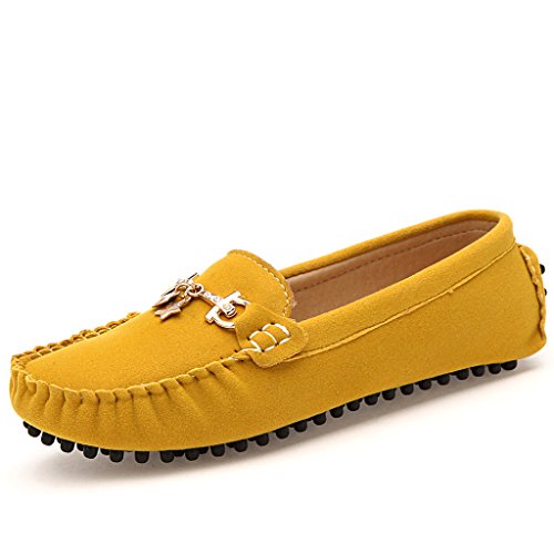 Best Seller! Sunrolan Women's Polyurethane Suede Round Toe Flats Slip-ons Loafers Driving Shoes 806, Yellow, UK 7 Review