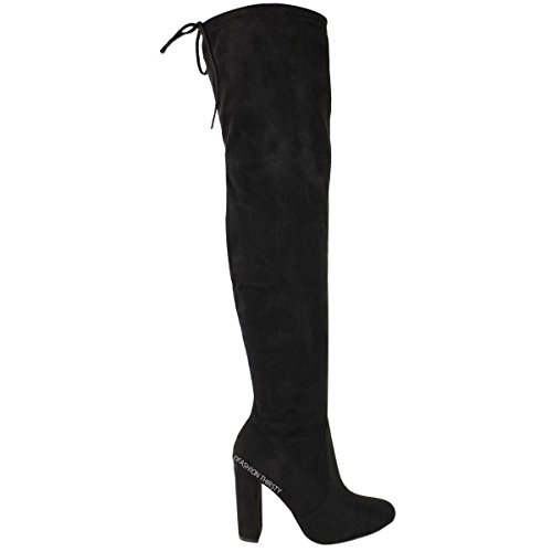 FLIRTY WARDROBE offer Womens Ladies Suede Over The Knee Boots Shoes Block High Heel Lace Thigh Stretch [Black, UK 7]. This awesome product currently limited units, you can buy it now for £25.99, You save -